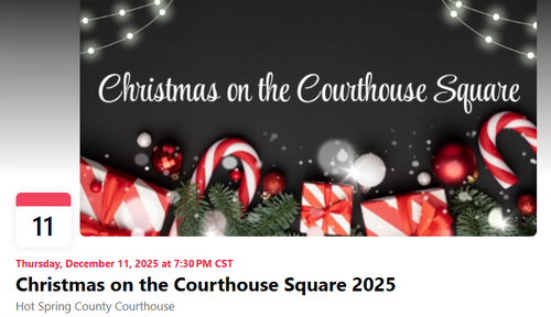 Festivities will begin around 7:30 p.m. at the Hot Spring County Courthouse.